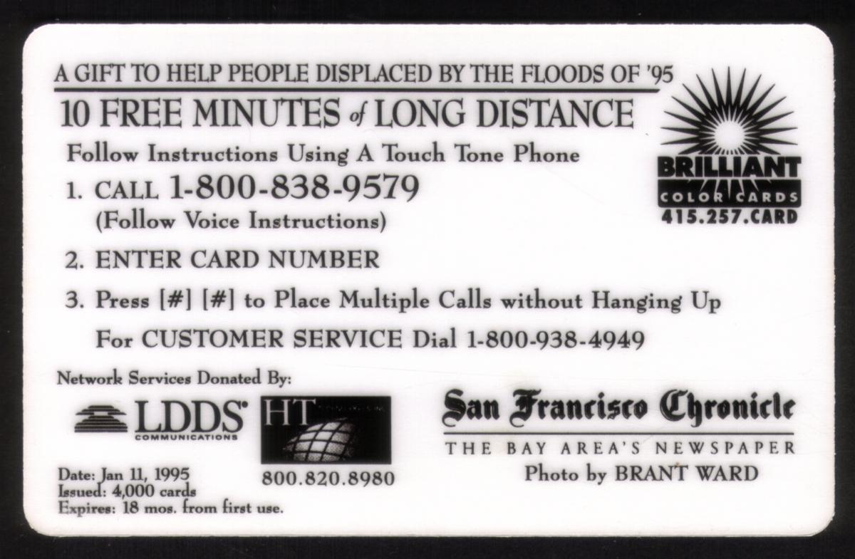 This card documents a natural disaster and the corresponding humanitarian response, featuring the American Red Cross and detailed coverage from the San Francisco Chronicle, with a credit to Brant Ward and HT Technologies. It serves as a promotional and commemorative item related to extensive floods affecting schools and communities across California.