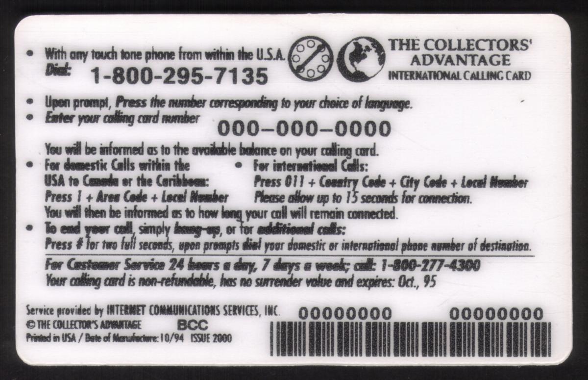 Since we have the world's largest inventory of USA phonecards for collectors, you will not necessarily receive the identical serial/batch/PIN number that we have scanned/pictured.