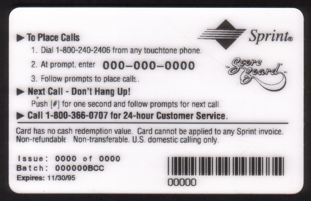 Since we have the world's largest inventory of USA phonecards for collectors, you will not necessarily receive the identical serial/batch/PIN number that we have scanned/pictured.