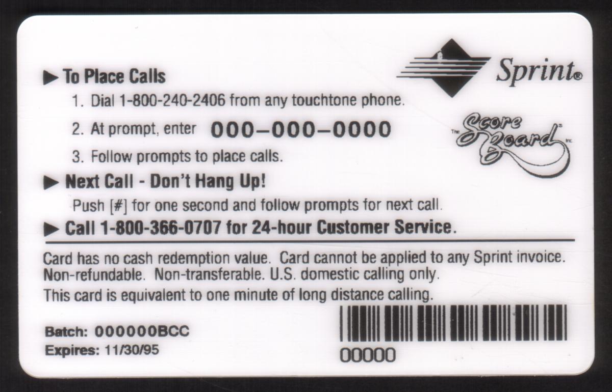 Since we have the world's largest inventory of USA phonecards for collectors, you will not necessarily receive the identical serial/batch/PIN number that we have scanned/pictured.