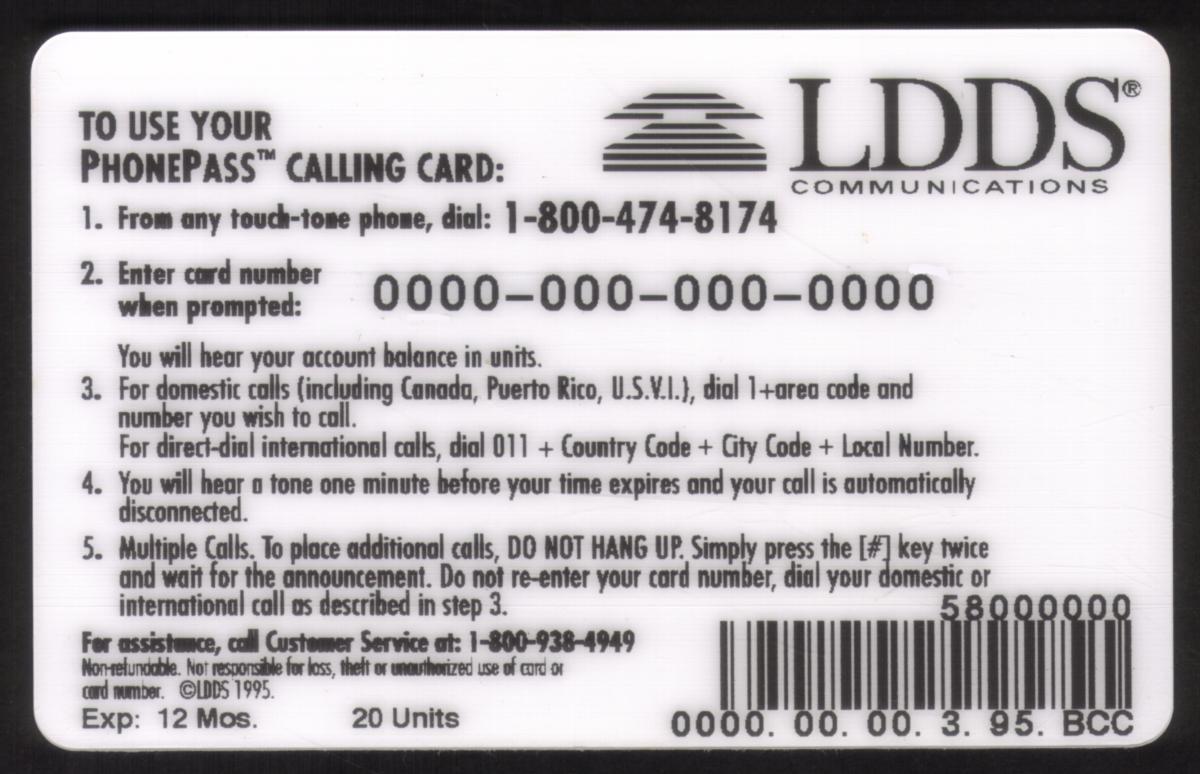 Since we have the world's largest inventory of USA phonecards for collectors, you will not necessarily receive the identical serial/batch/PIN number that we have scanned/pictured.