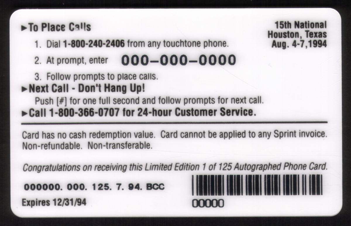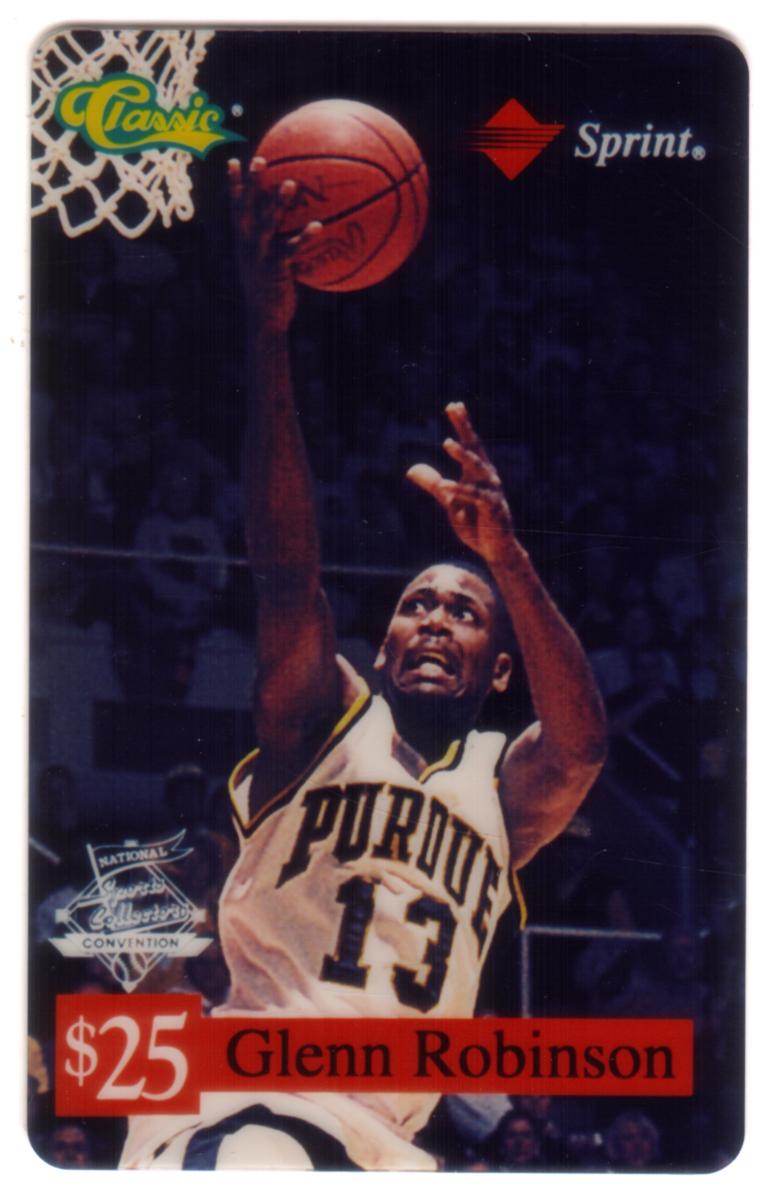 This phone card is part of a sports series connected to basketball and specifically the NBA and American basketball. It relates to the 15th National Houston Texas event dated 08/94. The card is a specimen produced by The Score Board Inc. and honors Glenn Robinson’s basketball career.