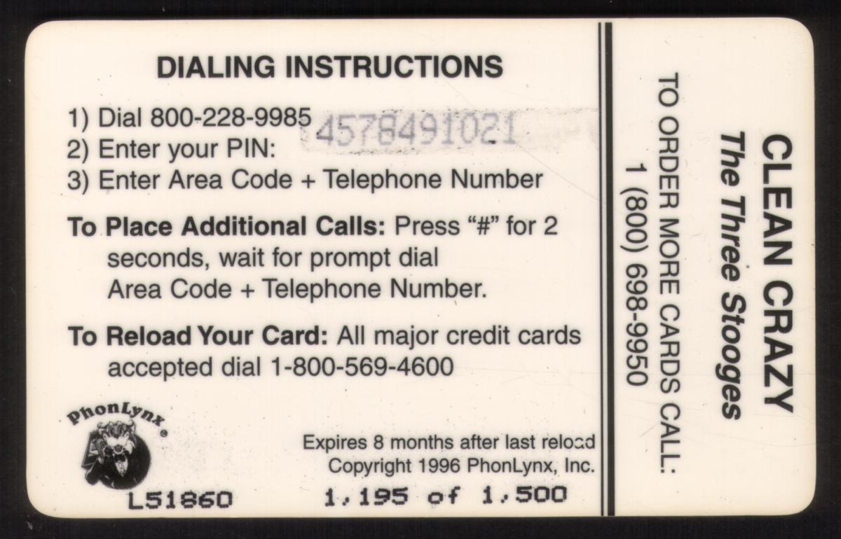 This collectible phone card highlights The Three Stooges as iconic figures of Hollywood comedy through a classic movie still, emphasizing their roles as beloved film stars and comedians in the entertainment industry. The card is used and issued by PhonLynx.