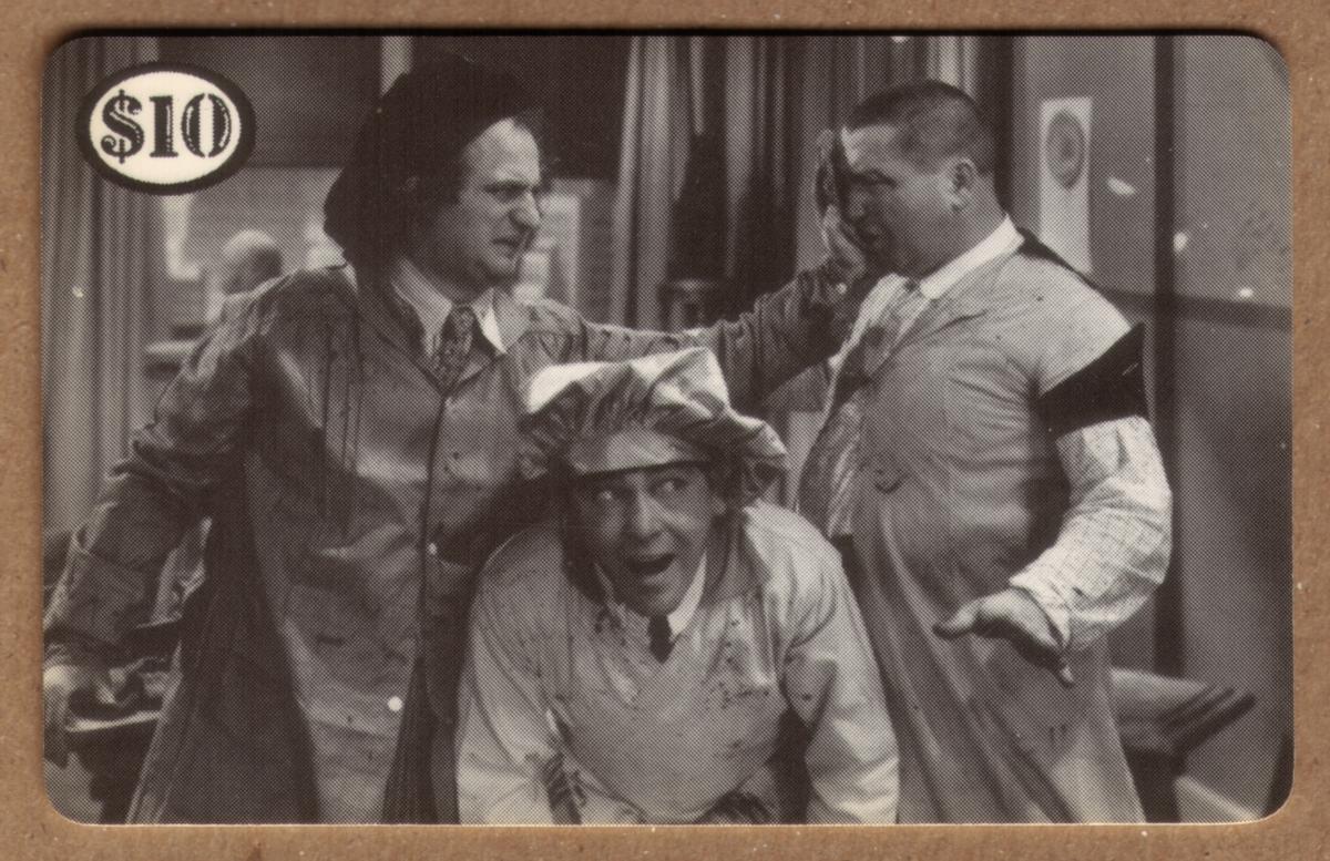 This collectible card is a part of entertainment memorabilia, celebrating the humor and legacy of The Three Stooges in film and television comedy.