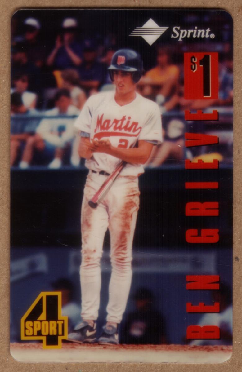 This item belongs to the 4-Sport Series by The Score Board Inc., specializing in Major League Baseball collectibles. The design captures an in-action moment of Ben Grieve, a noted baseball player, emphasizing the sports theme with clear branding from 4 Sport and Sprint.