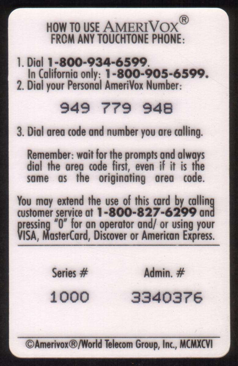 Since we have the world's largest inventory of USA phonecards for collectors, you will not necessarily receive the identical serial/batch/PIN number that we have scanned/pictured.