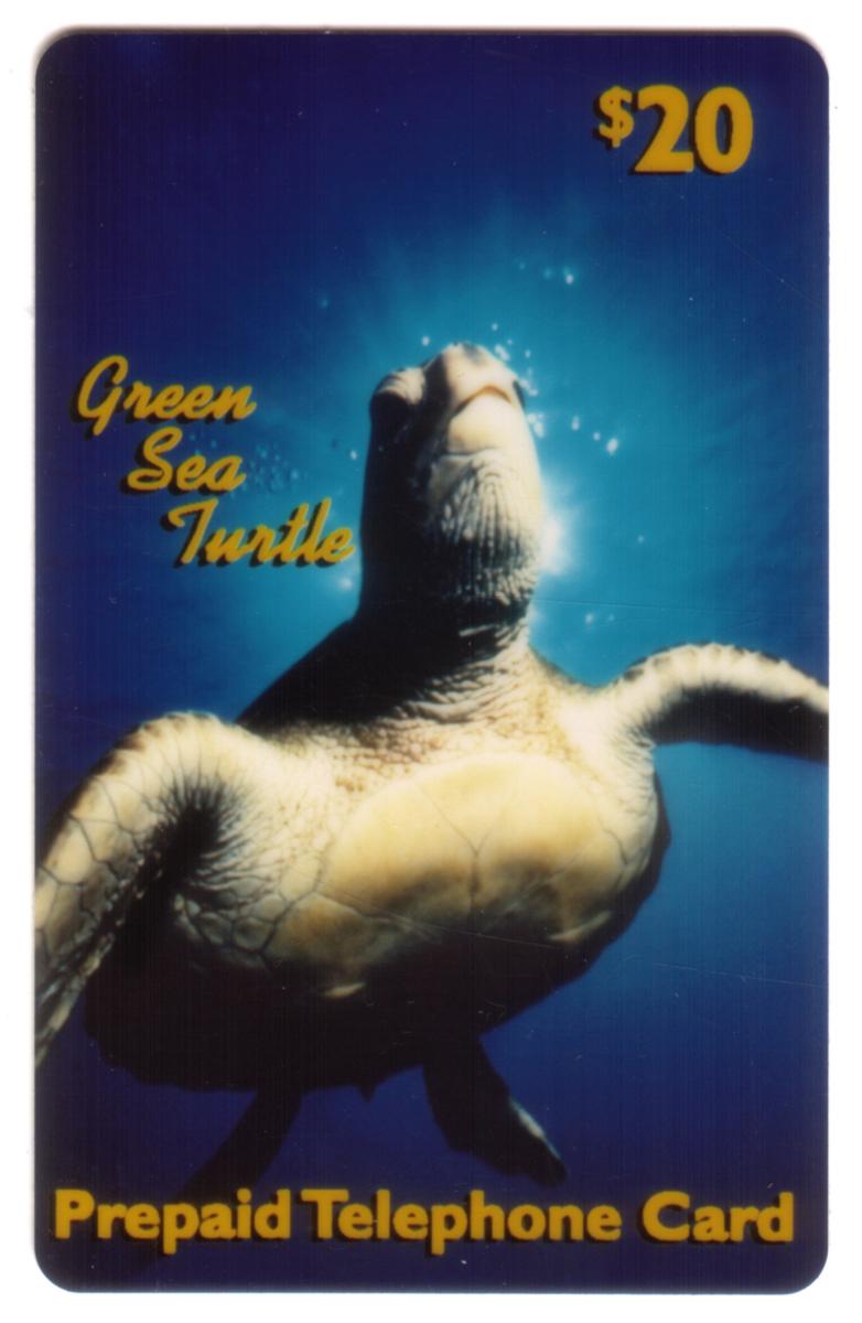 This phone card captures the sea life theme with a focus on marine creatures, emphasizing the serene and graceful movement of the Green Sea Turtle in its natural underwater habitat.