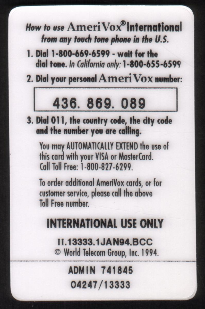 Since we have the world's largest inventory of USA phonecards for collectors, you will not necessarily receive the identical serial/batch/PIN number that we have scanned/pictured.