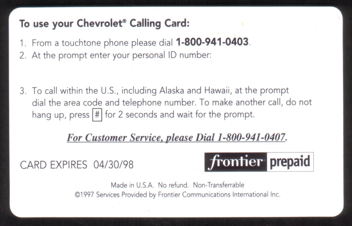 Since we have the world's largest inventory of USA phonecards for collectors, you will not necessarily receive the identical serial/batch/PIN number that we have scanned/pictured.