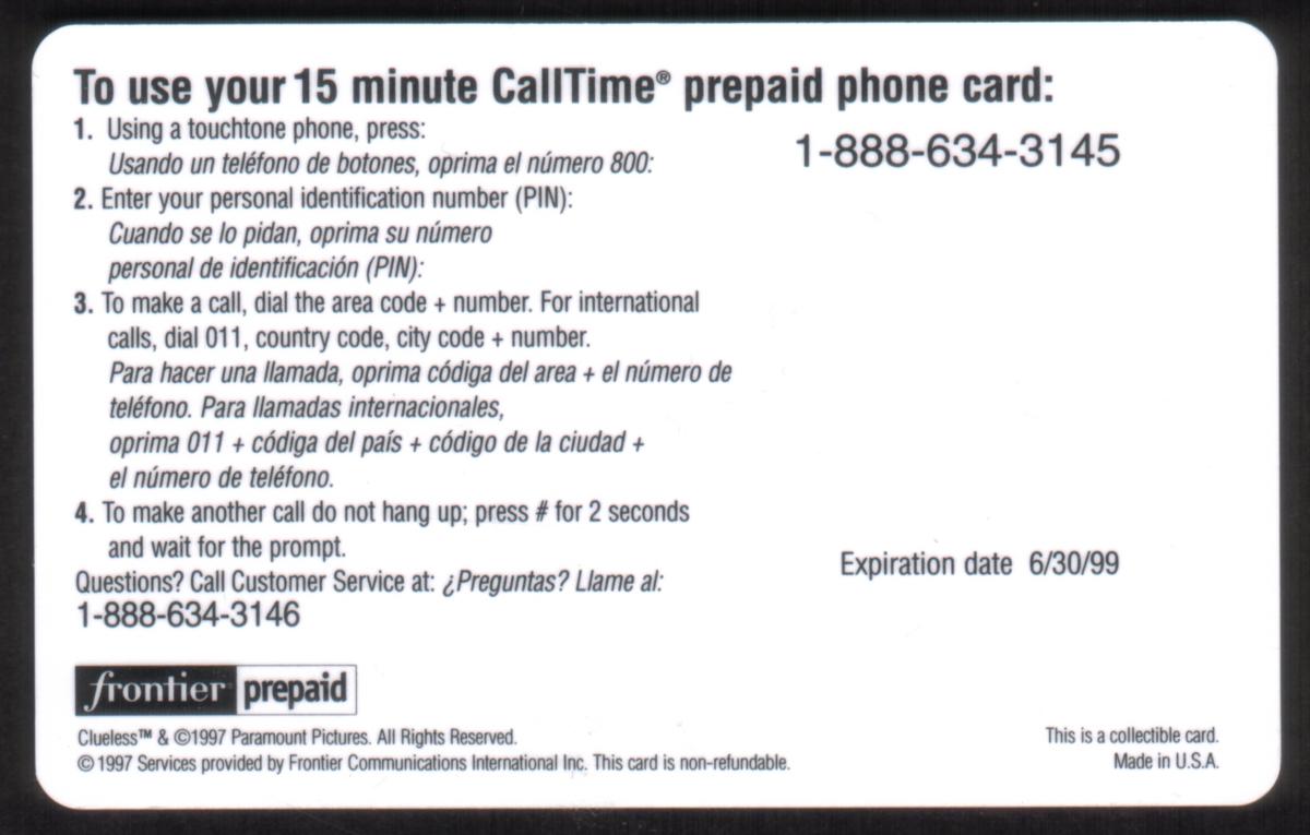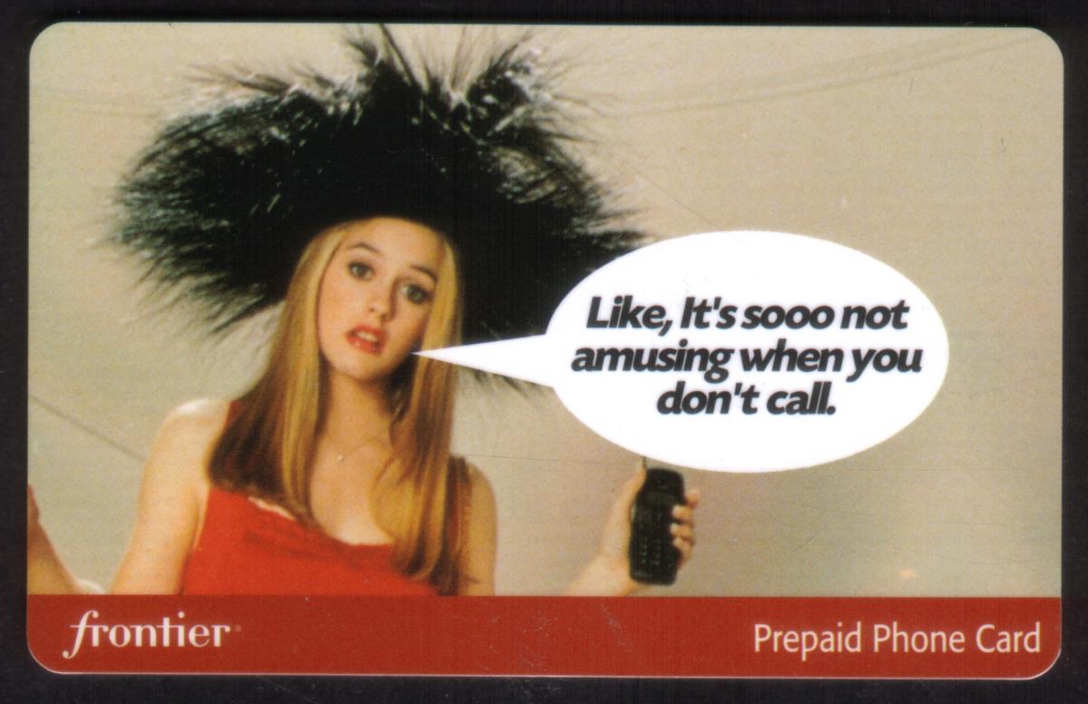 Keywords: promotional, beverly hills high school, cher, like it's sooo not amusing when you don't call, phones on phone cards, telephones on phonecards, teen film, romance, school, Frontier Commun.
