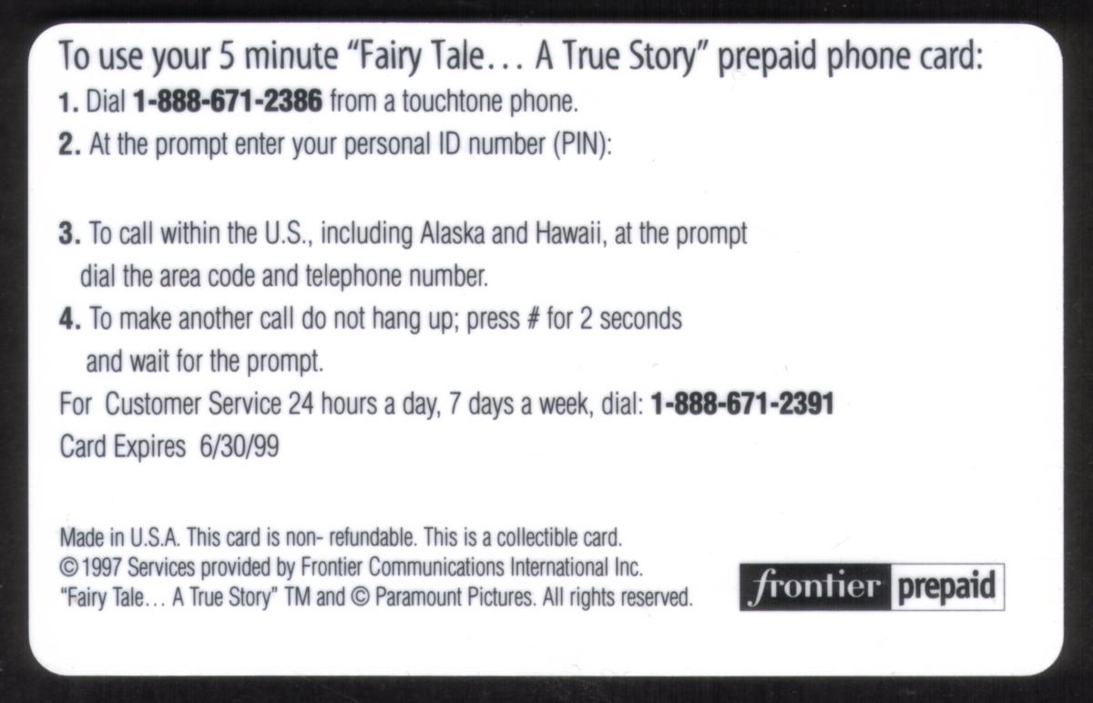 Since we have the world's largest inventory of USA phonecards for collectors, you will not necessarily receive the identical serial/batch/PIN number that we have scanned/pictured.