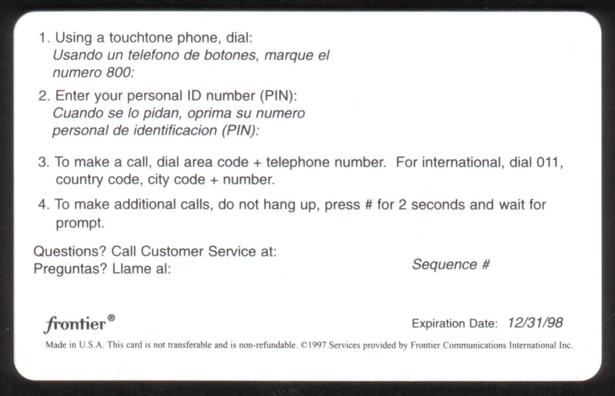 Since we have the world's largest inventory of USA phonecards for collectors, you will not necessarily receive the identical serial/batch/PIN number that we have scanned/pictured.