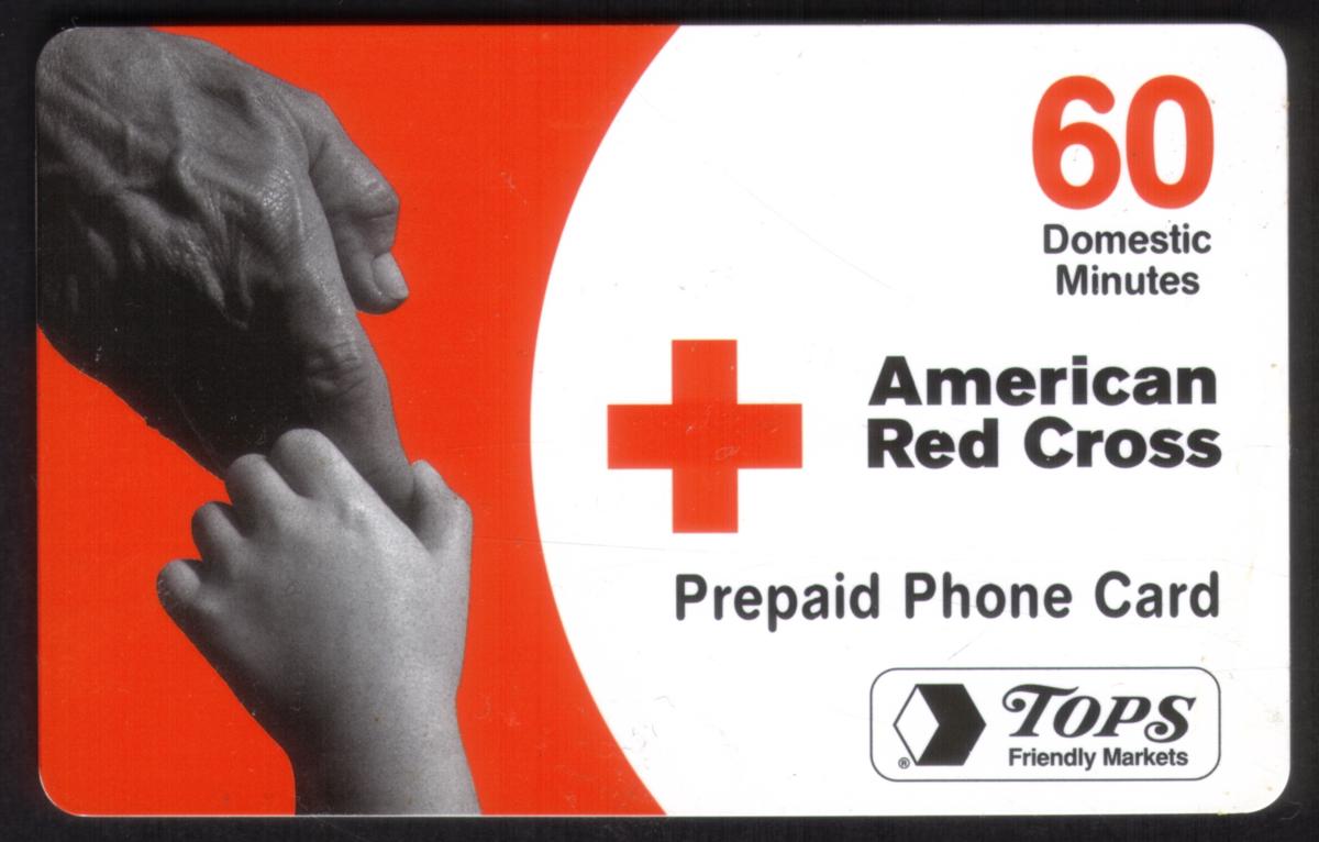 The bottom right corner displays the logo and name of Tops Friendly Markets, indicating a promotional collaboration. This card is associated with non-profit organizations and promotional efforts, as highlighted by its connection to the American Red Cross and Tops Friendly Markets.