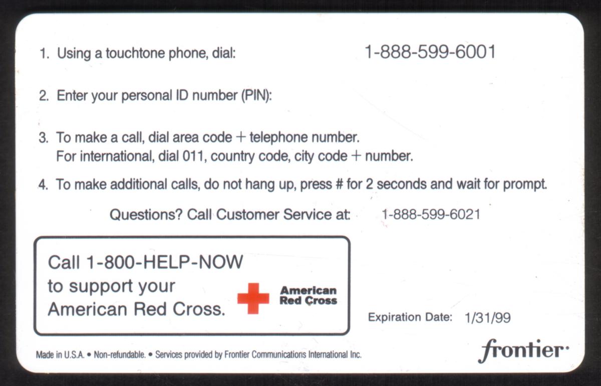Since we have the world's largest inventory of USA phonecards for collectors, you will not necessarily receive the identical serial/batch/PIN number that we have scanned/pictured.