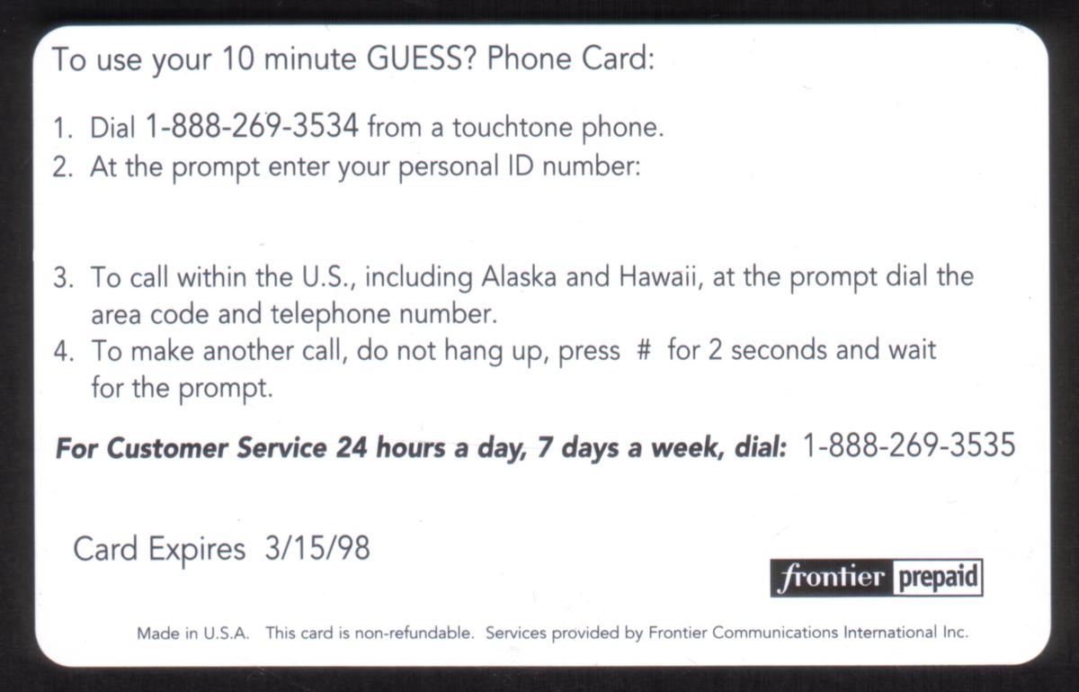 Since we have the world's largest inventory of USA phonecards for collectors, you will not necessarily receive the identical serial/batch/PIN number that we have scanned/pictured.