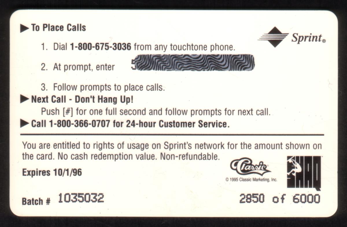 Since we have the world's largest inventory of USA phonecards for collectors, you will not necessarily receive the identical serial/batch/PIN number that we have scanned/pictured.
