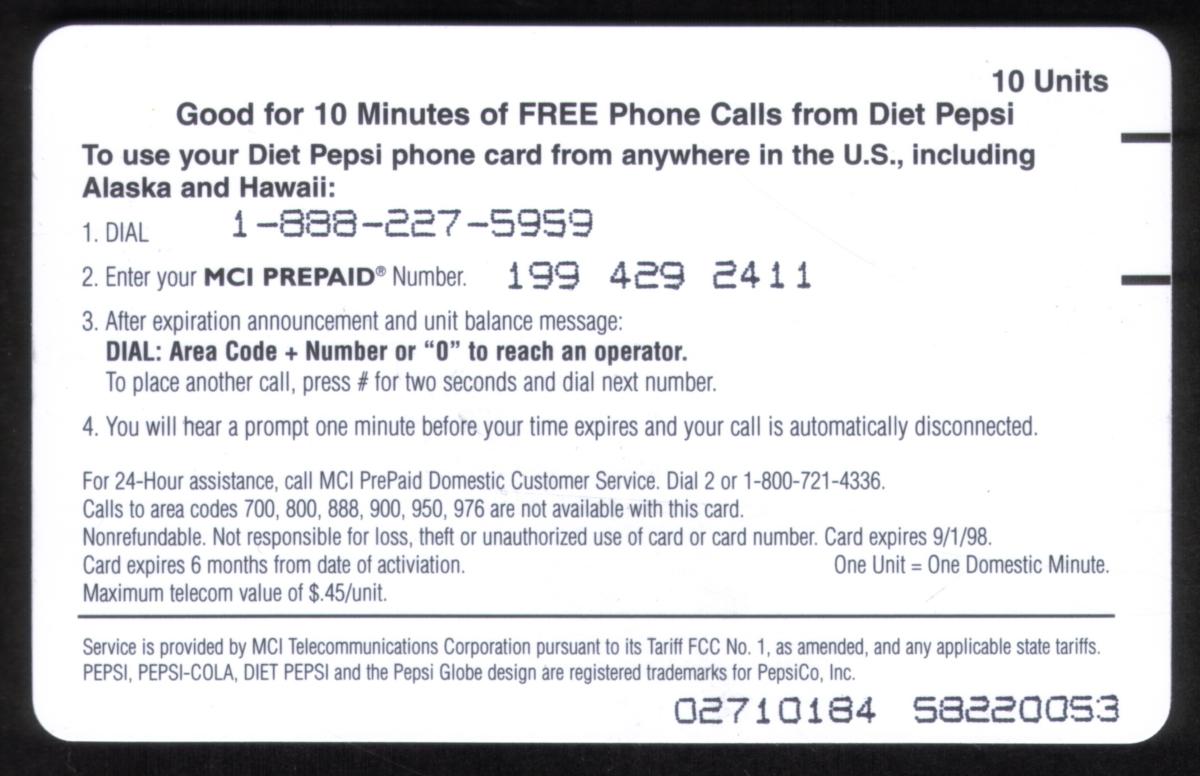 Since we have the world's largest inventory of USA phonecards for collectors, you will not necessarily receive the identical serial/batch/PIN number that we have scanned/pictured.