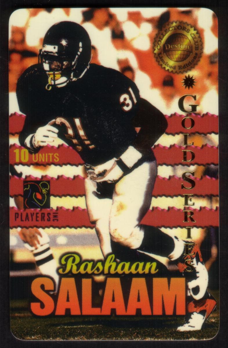 Overall, this card is a valuable collectible for NFL and Chicago Bears fans, showcasing Rashaan Salaam’s professional football legacy. The presentation emphasizes the player’s identity, team affiliation, and the card’s limited edition status.