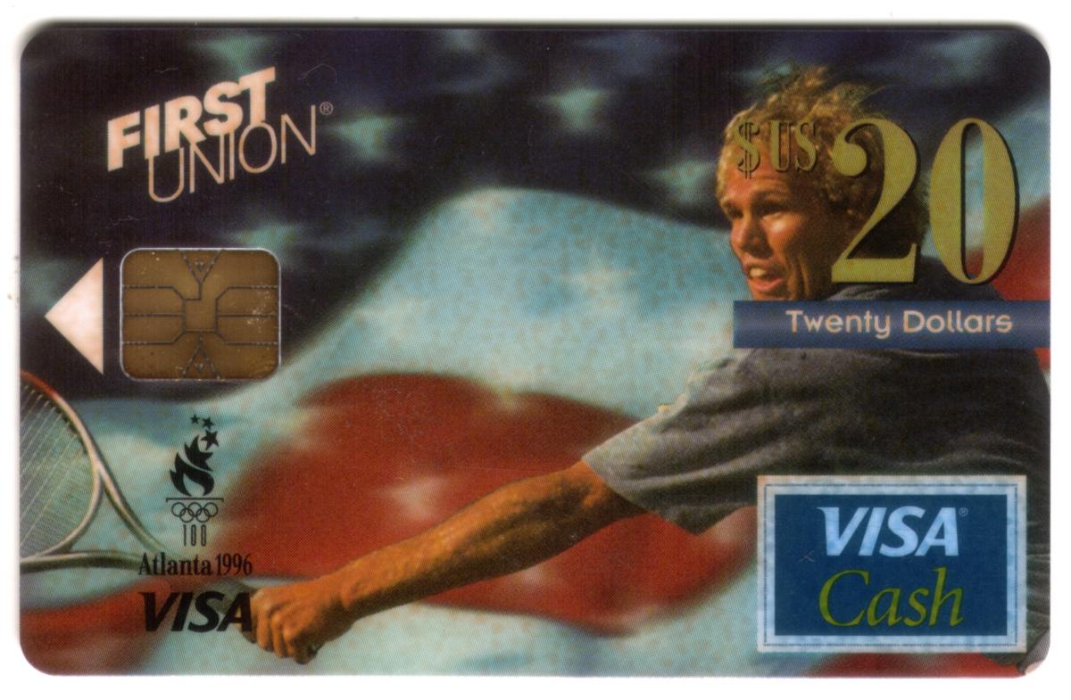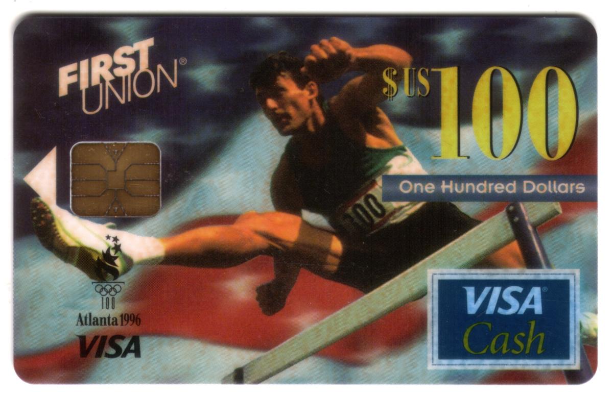 Keywords: sports: olympics, sports: running, chip cards, stored value cards, basketball, tennis, rowing, high jump, bankcard, schlumberger, First Union Corp. Bank
