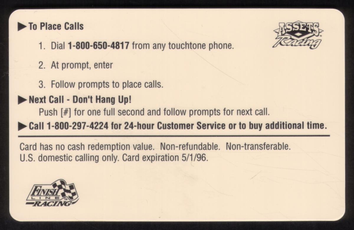 This card is part of the Assets Racing 1995 series, showcasing NASCAR cars and racing imagery, making it a collectible item for fans of auto racing and NASCAR memorabilia.