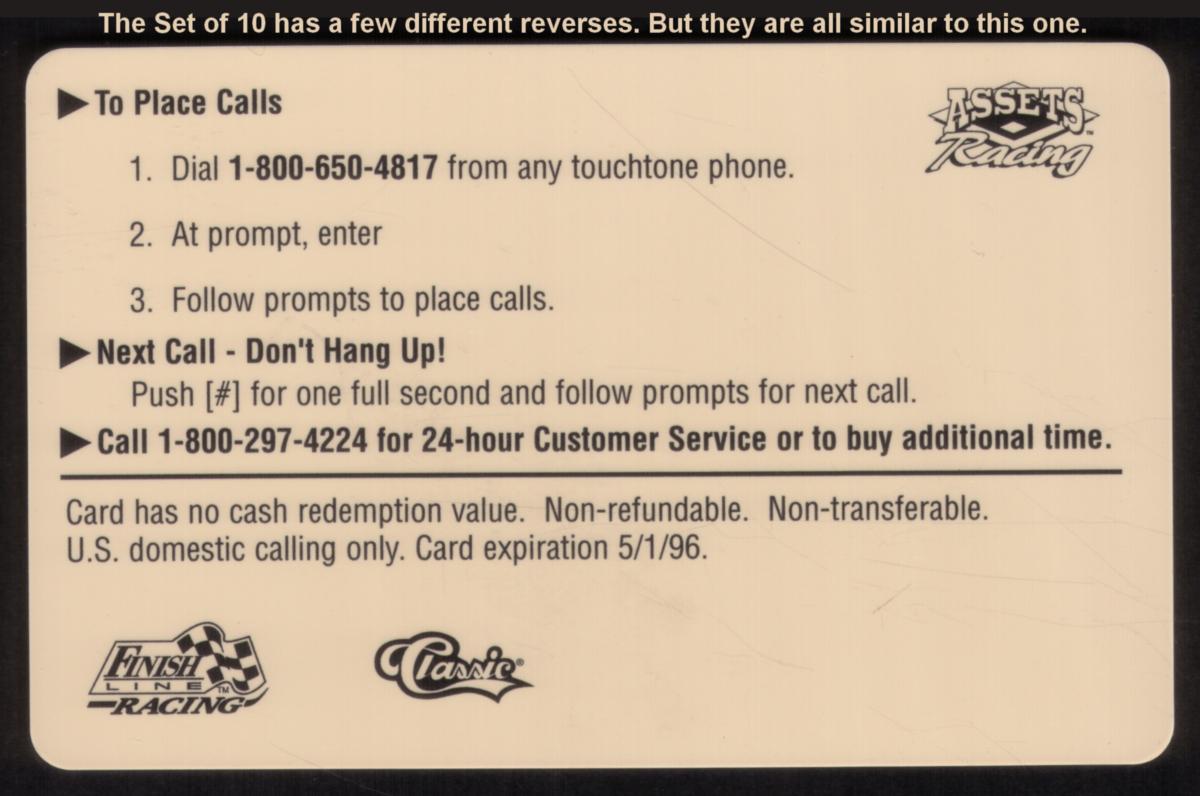 | Assets Racing 1995: $5. Cards: Complete Set of 10 Different SPECIMENS |