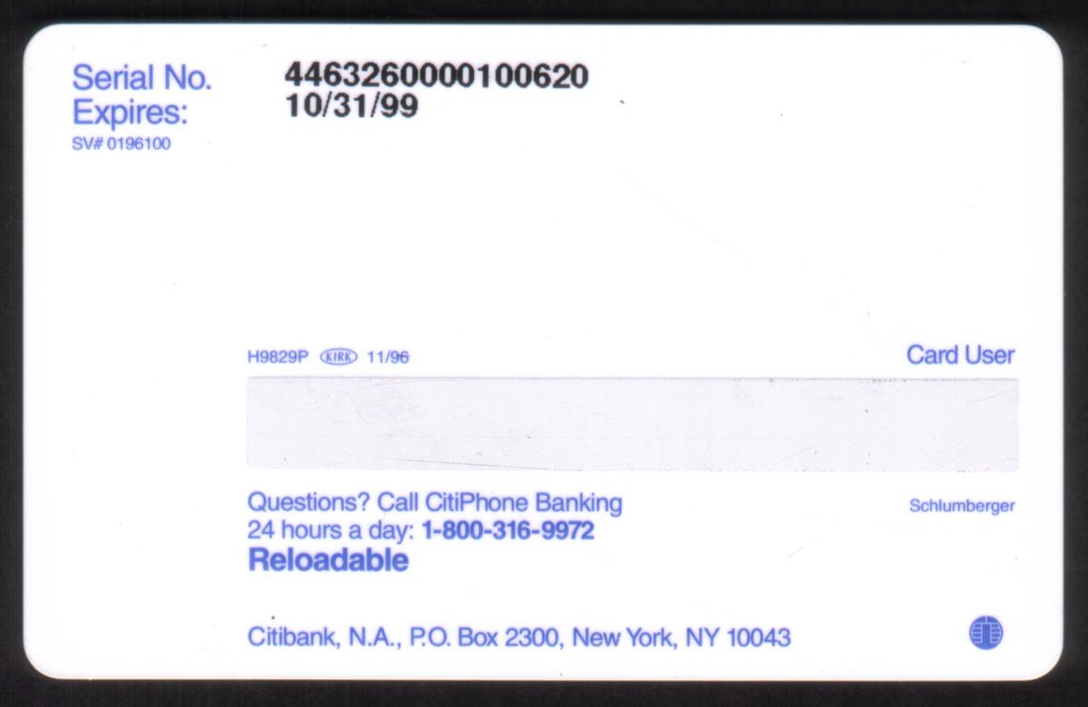 Keywords: Promotional, stored value card, smart card, banking, chip card, svc, bankcard, schlumberger, CitiBank