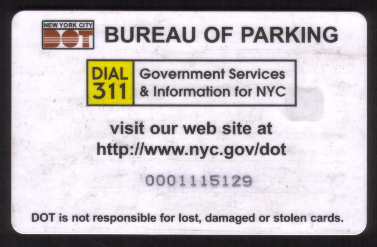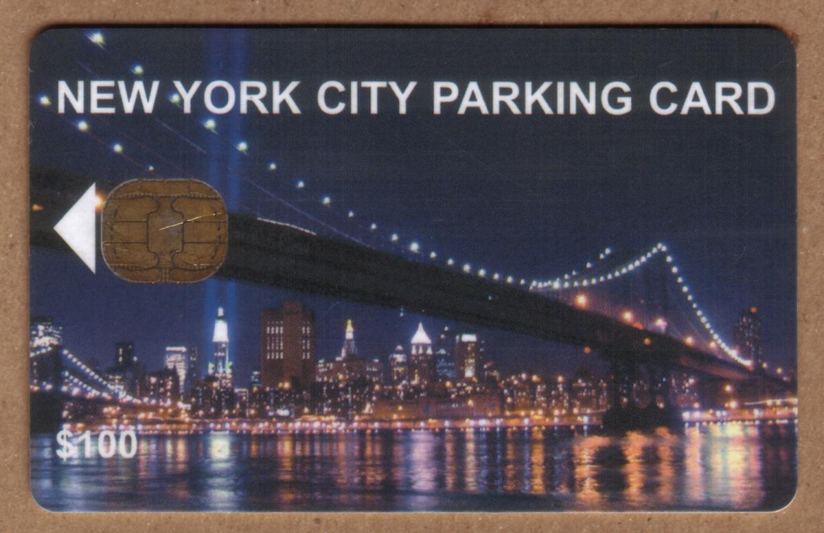This card is issued by the New York City Department of Transportation, Bureau of Parking. It is identified as "Chip #2A VERY USED" and is part of the NYP (New York Parking) system. The card is meant for parking purposes within New York City and is a collectible item related to NYC parking services.