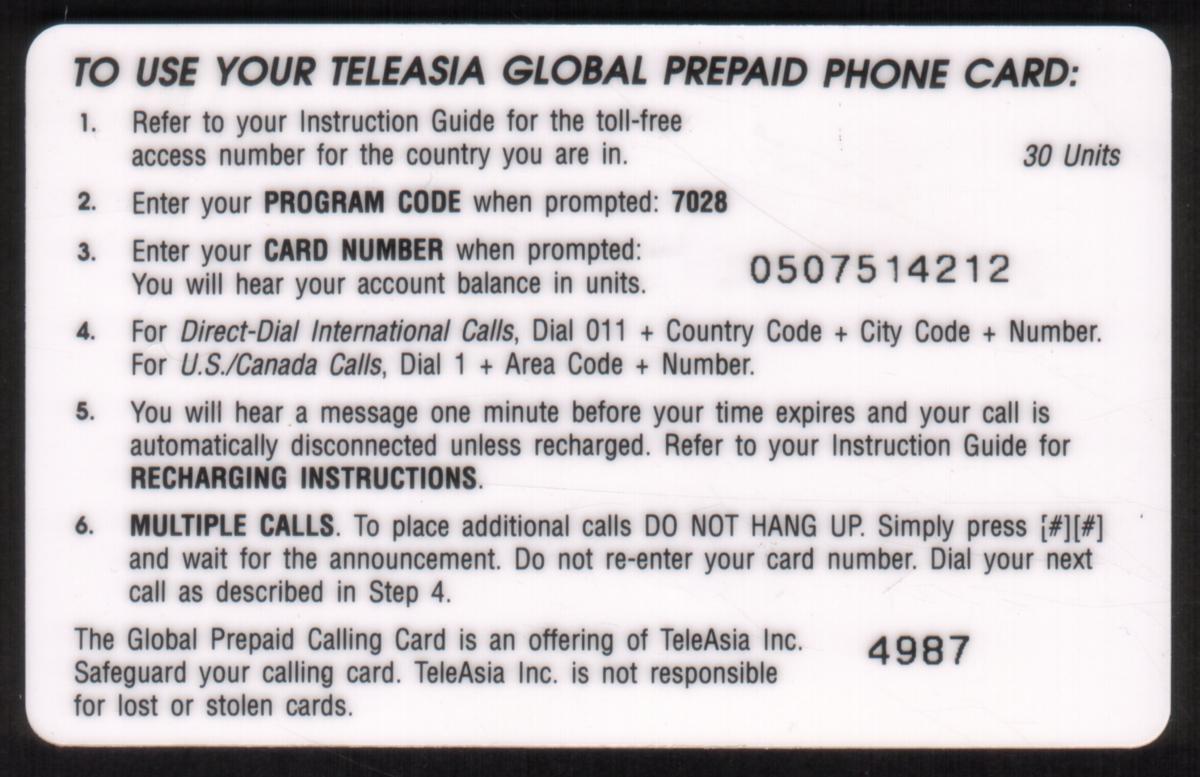 Since we have the world's largest inventory of USA phonecards for collectors, you will not necessarily receive the identical serial/batch/PIN number that we have scanned/pictured.