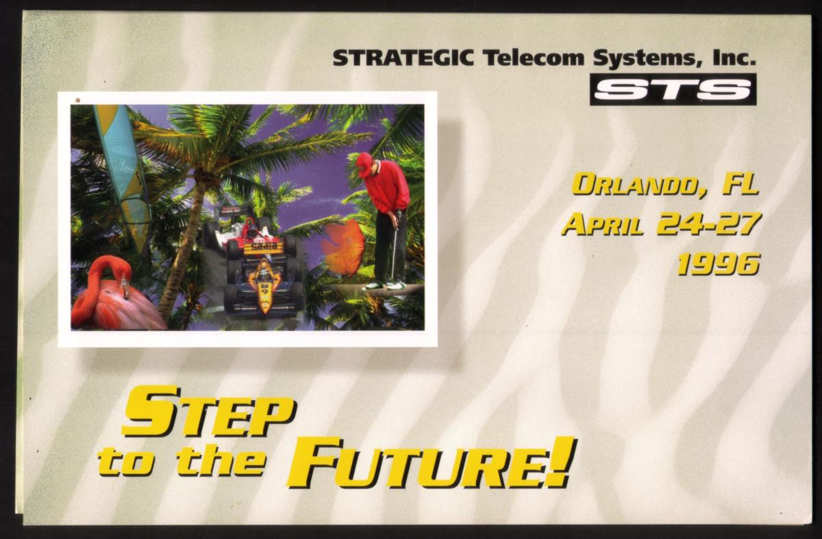 These cards are tied to the 1996 Orlando Florida Convention held from April 24 to 27. The themes of golf, auto racing, and tropical wildlife create a distinctive and colorful set connected to the event and the Strategic Telecom Systems brand.