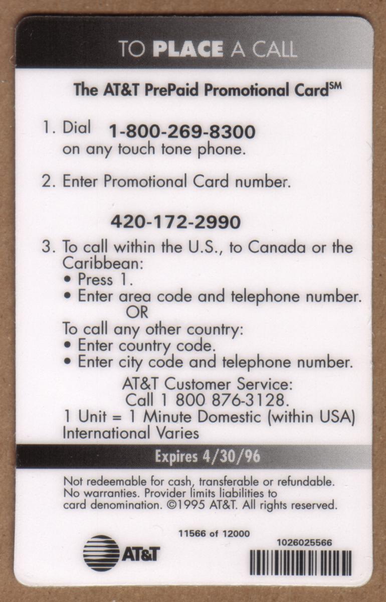 Since we have the world's largest inventory of USA phonecards for collectors, you will not necessarily receive the identical serial/batch/PIN number that we have scanned/pictured.