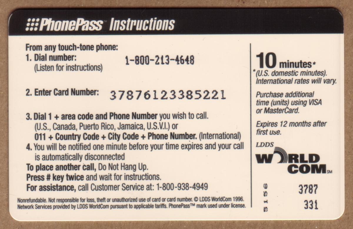 Since we have the world's largest inventory of USA phonecards for collectors, you will not necessarily receive the identical serial/batch/PIN number that we have scanned/pictured.
