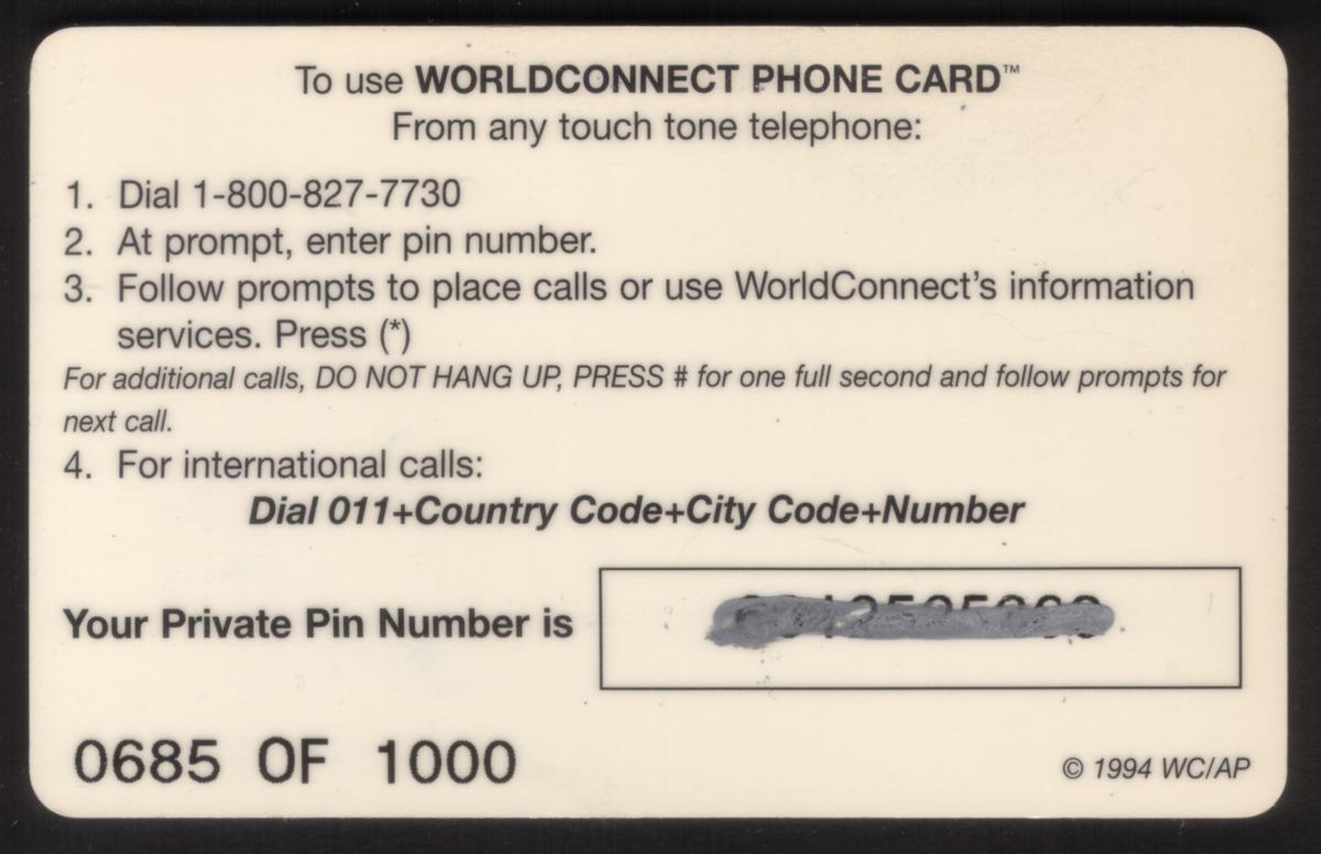 Since we have the world's largest inventory of USA phonecards for collectors, you will not necessarily receive the identical serial/batch/PIN number that we have scanned/pictured.