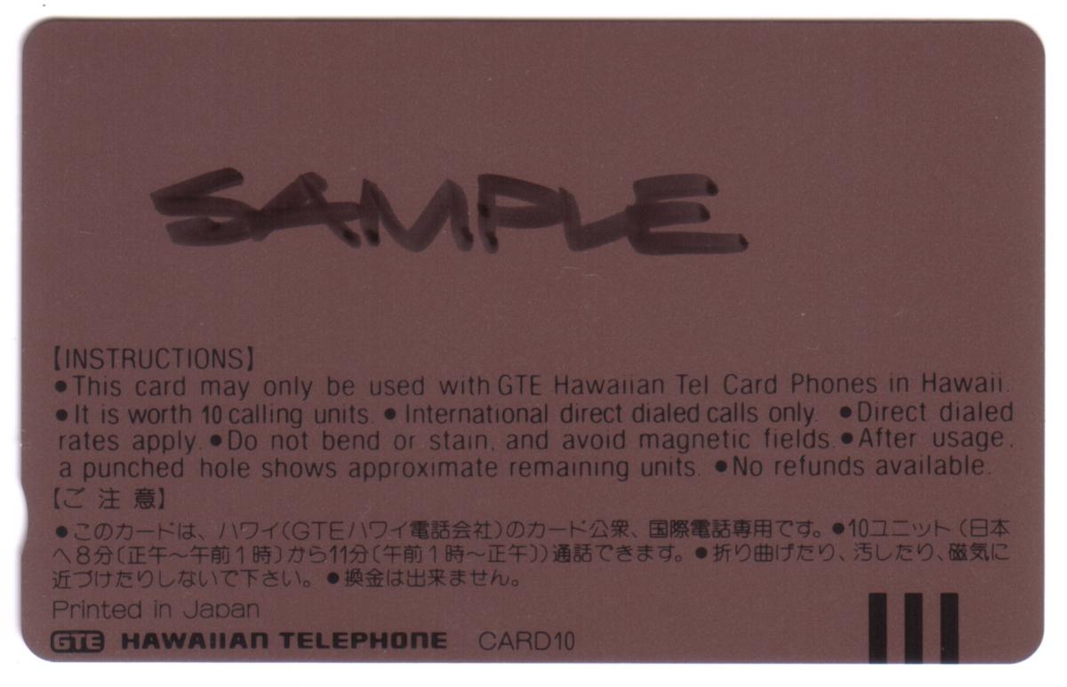 The card includes the text "10 UNITS" and "GTE HAWAIIAN TELEPHONE" at the top right, indicating its telephone card function and issuing company. The word "HAWAII" appears prominently in bold white letters at the bottom left corner. The card’s design highlights scenic coastlines and beach views typical of Hawaii’s popular sightseeing and travel destinations.