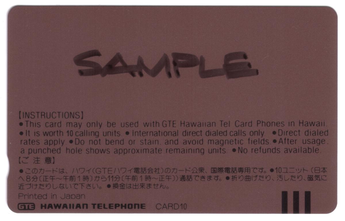 This phone card appeals to collectors interested in travel, scenic vistas, and Hawaiian themes. It highlights the natural landscapes of Hawaii with its focus on the mountains, beaches, and vivid sunsets found in the islands. The GTE Hawaiian Telephone branding further ties the card to Hawaii’s telecommunications history.