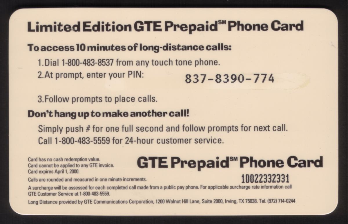 Since we have the world's largest inventory of USA phonecards for collectors, you will not necessarily receive the identical serial/batch/PIN number that we have scanned/pictured.
