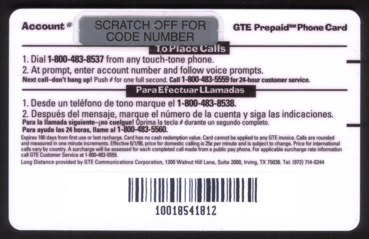 Since we have the world's largest inventory of USA phonecards for collectors, you will not necessarily receive the identical serial/batch/PIN number that we have scanned/pictured.