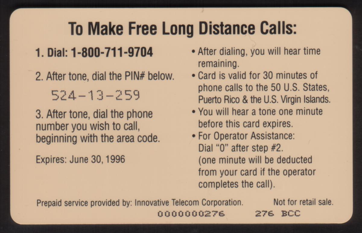 Since we have the world's largest inventory of USA phonecards for collectors, you will not necessarily receive the identical serial/batch/PIN number that we have scanned/pictured.