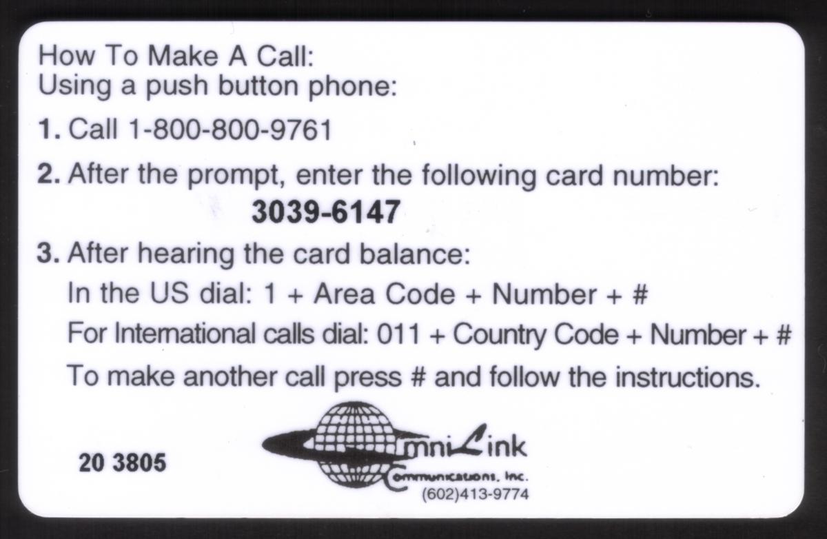 Since we have the world's largest inventory of USA phonecards for collectors, you will not necessarily receive the identical serial/batch/PIN number that we have scanned/pictured.