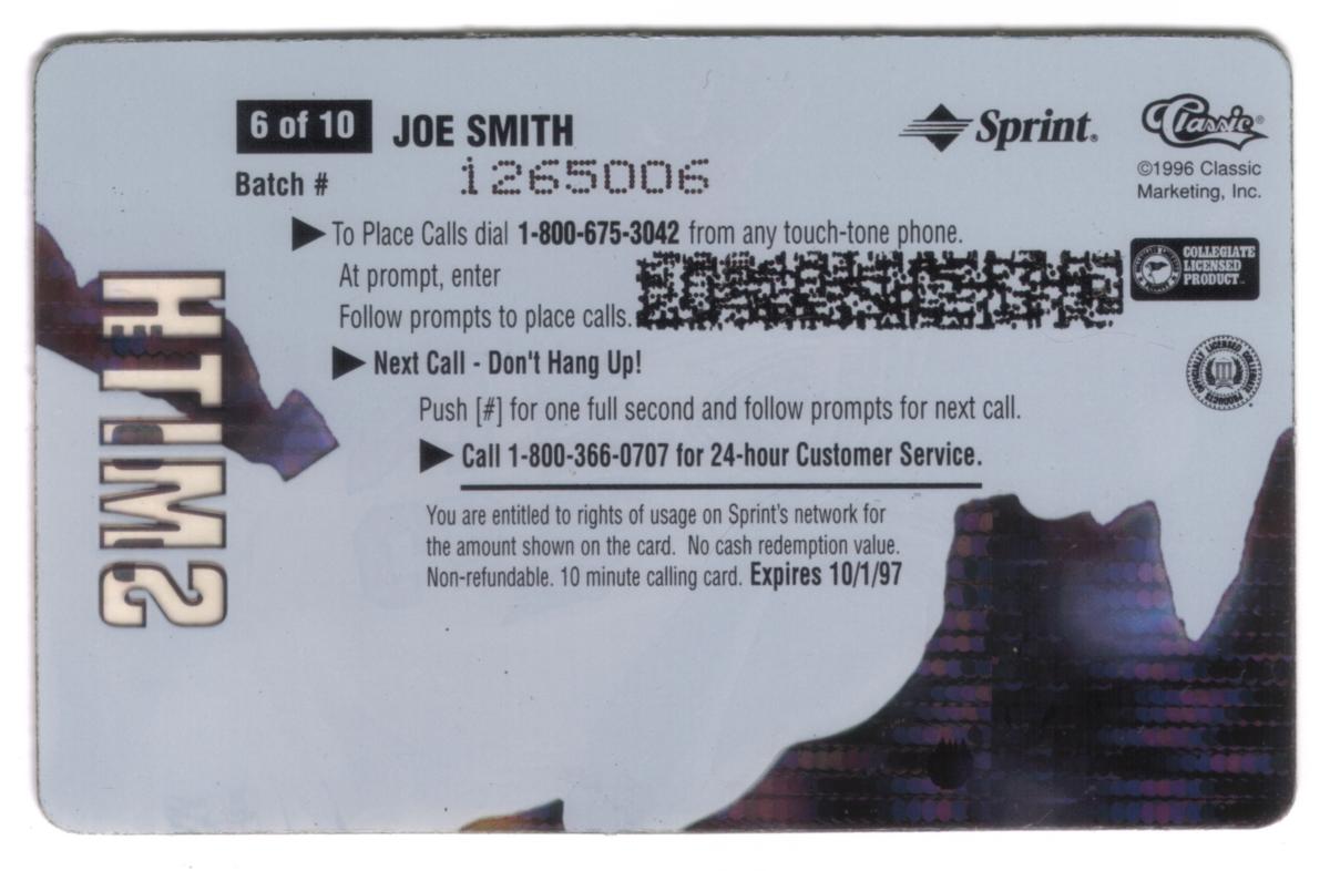 This phone card belongs to a limited series related to basketball within the National Basketball Association (NBA) theme, focusing on basketball players and memorabilia from the mid-1990s. The design highlights Joe Smith as a key figure in this collectible set.