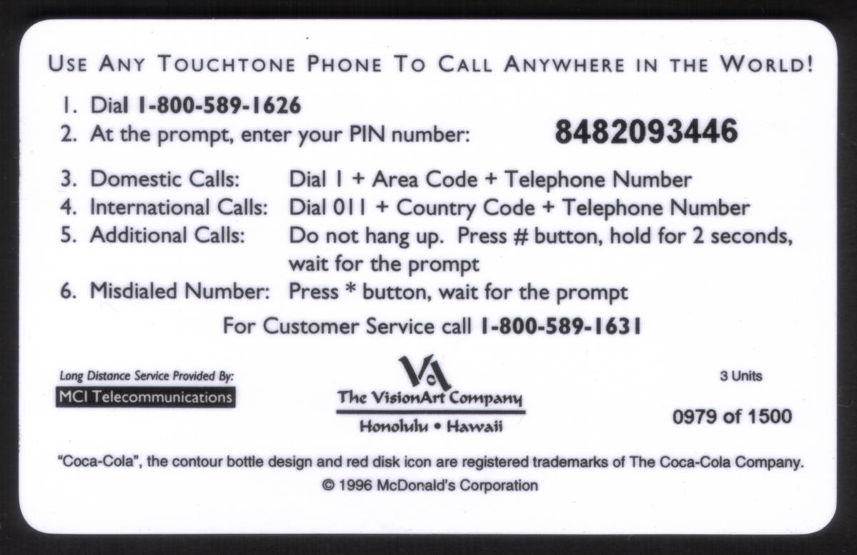 Since we have the world's largest inventory of USA phonecards for collectors, you will not necessarily receive the identical serial/batch/PIN number that we have scanned/pictured.