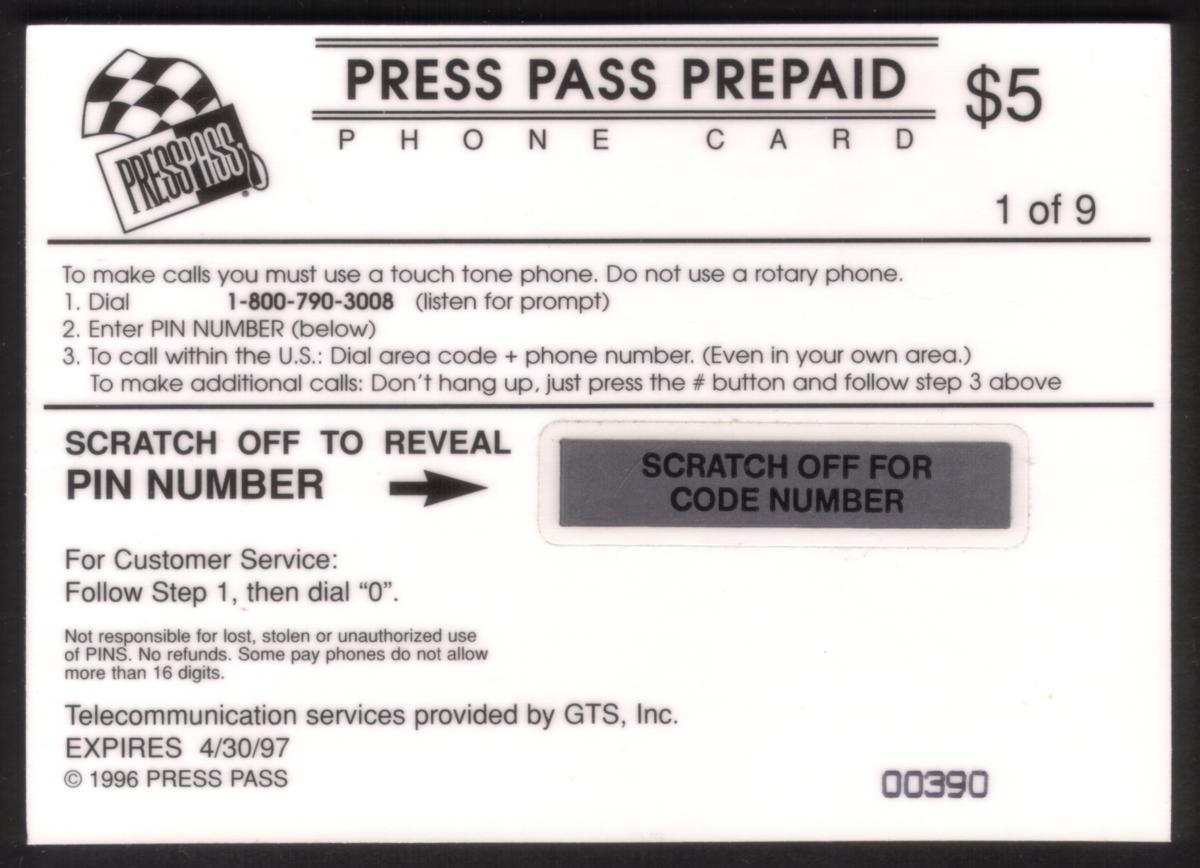 Since we have the world's largest inventory of USA phonecards for collectors, you will not necessarily receive the identical serial/batch/PIN number that we have scanned/pictured.