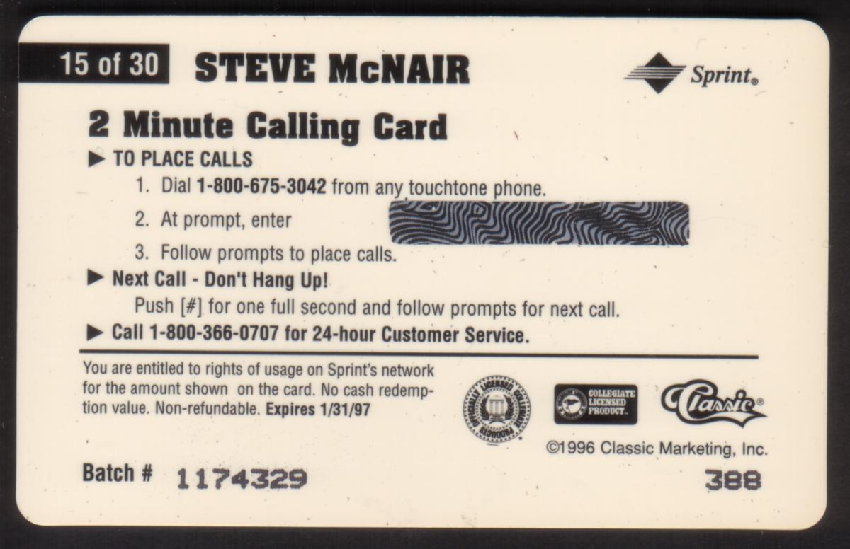 Since we have the world's largest inventory of USA phonecards for collectors, you will not necessarily receive the identical serial/batch/PIN number that we have scanned/pictured.