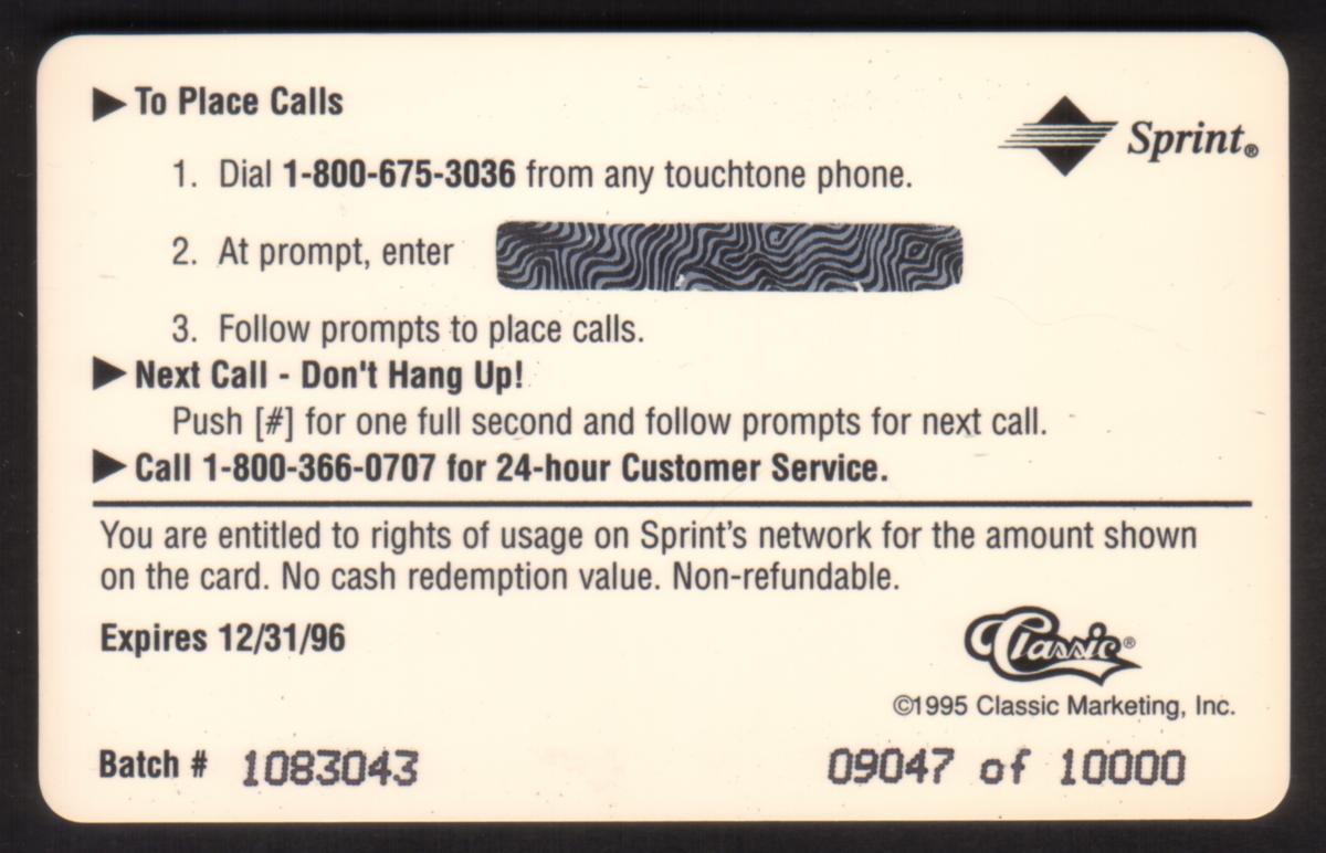 Since we have the world's largest inventory of USA phonecards for collectors, you will not necessarily receive the identical serial/batch/PIN number that we have scanned/pictured.