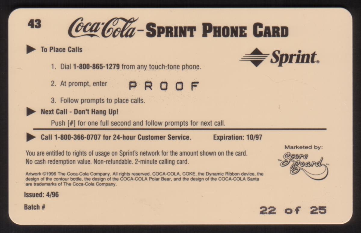 Since we have the world's largest inventory of USA phonecards for collectors, you will not necessarily receive the identical serial/batch/PIN number that we have scanned/pictured.