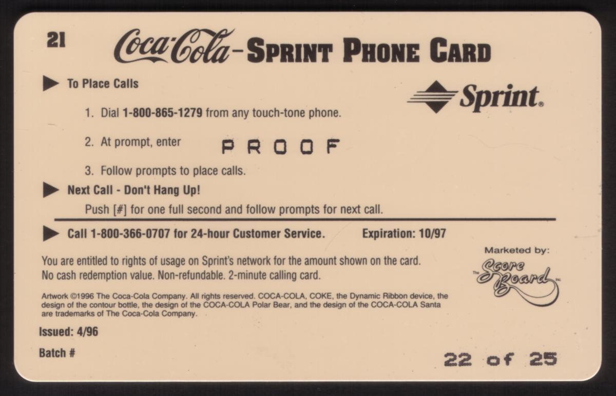 Since we have the world's largest inventory of USA phonecards for collectors, you will not necessarily receive the identical serial/batch/PIN number that we have scanned/pictured.