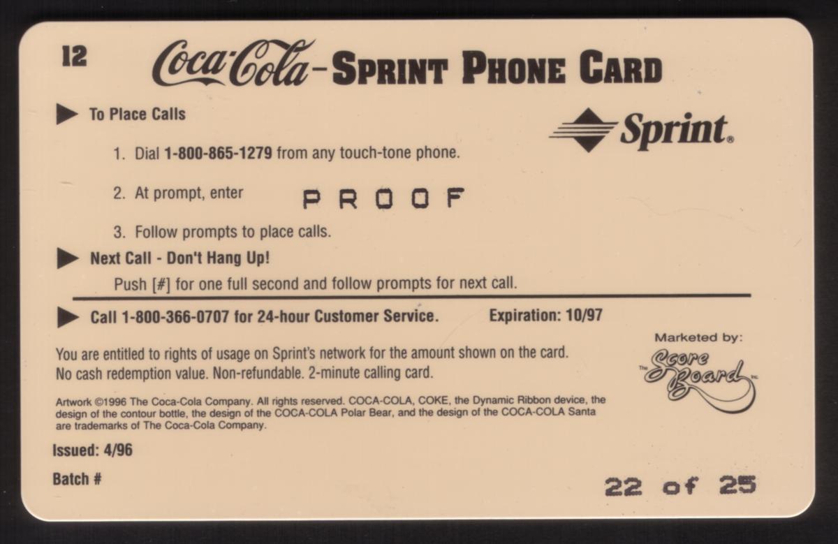 This card is identified as Coke Card #12 of 48 by The Score Board Inc. It contains multiple Coca-Cola logos and the "military PROOF Coca-Cola '96" designation, referencing its collectible nature and historic theme related to World War II.