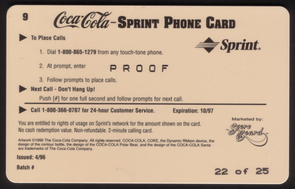 Since we have the world's largest inventory of USA phonecards for collectors, you will not necessarily receive the identical serial/batch/PIN number that we have scanned/pictured.
