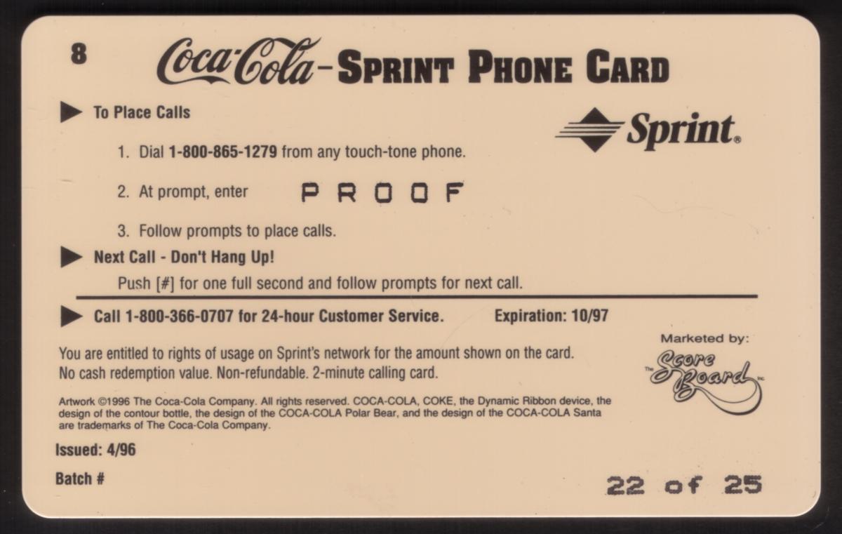 Since we have the world's largest inventory of USA phonecards for collectors, you will not necessarily receive the identical serial/batch/PIN number that we have scanned/pictured.