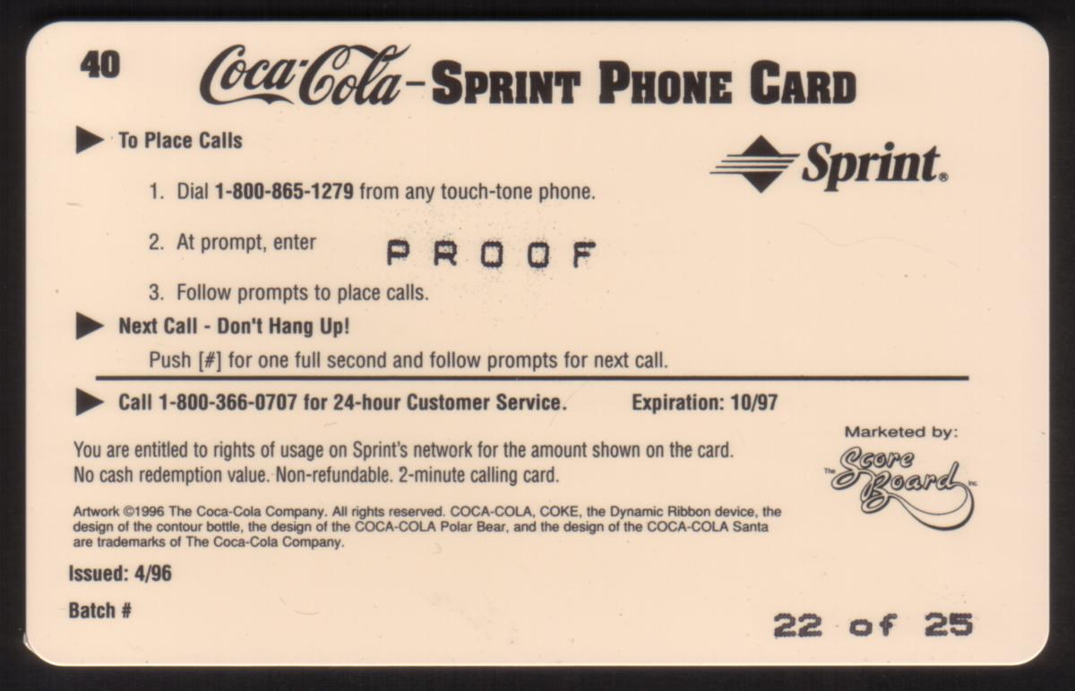 Since we have the world's largest inventory of USA phonecards for collectors, you will not necessarily receive the identical serial/batch/PIN number that we have scanned/pictured.
