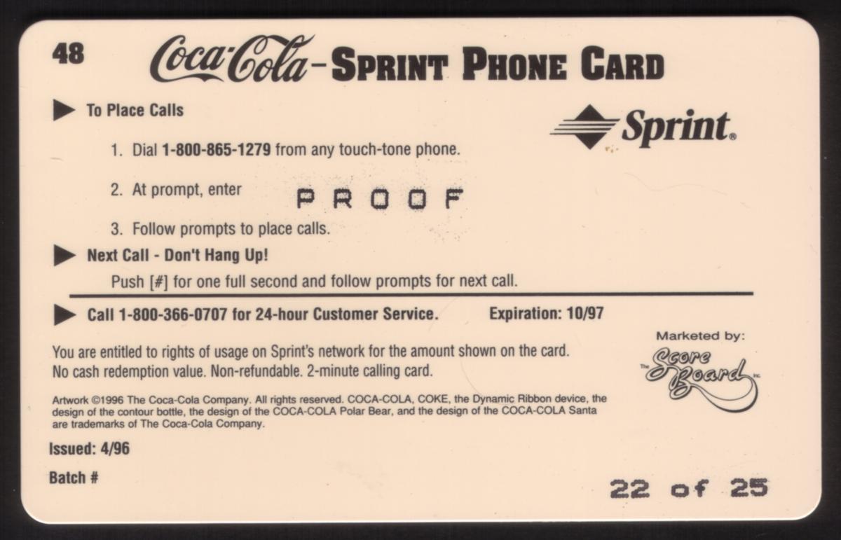 Since we have the world's largest inventory of USA phonecards for collectors, you will not necessarily receive the identical serial/batch/PIN number that we have scanned/pictured.